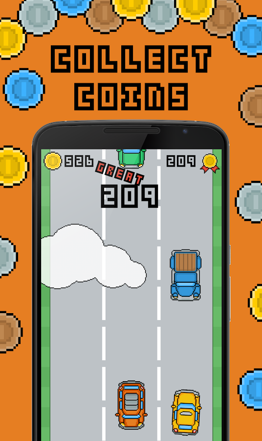 - Touch or swype on a lane to dodge cars and other obstacles, thats it!